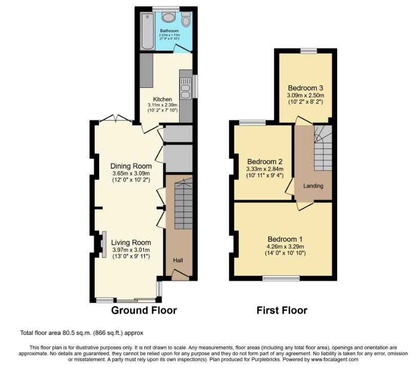 Accommodation comprises entrance hall with stairs rising to the first floor, leading into the double length reception room with window to front and double doors to the rear onto the garden. The separate kitchen comprises a range of matching wall and base units with work surfaces incorporating inset sink unit, gas hob with overhead extractor, electric oven, and further space for appliances. A family bathroom to the rear of the house completes the lower level accommodation. To the first floor, there are three well proportioned bedrooms.