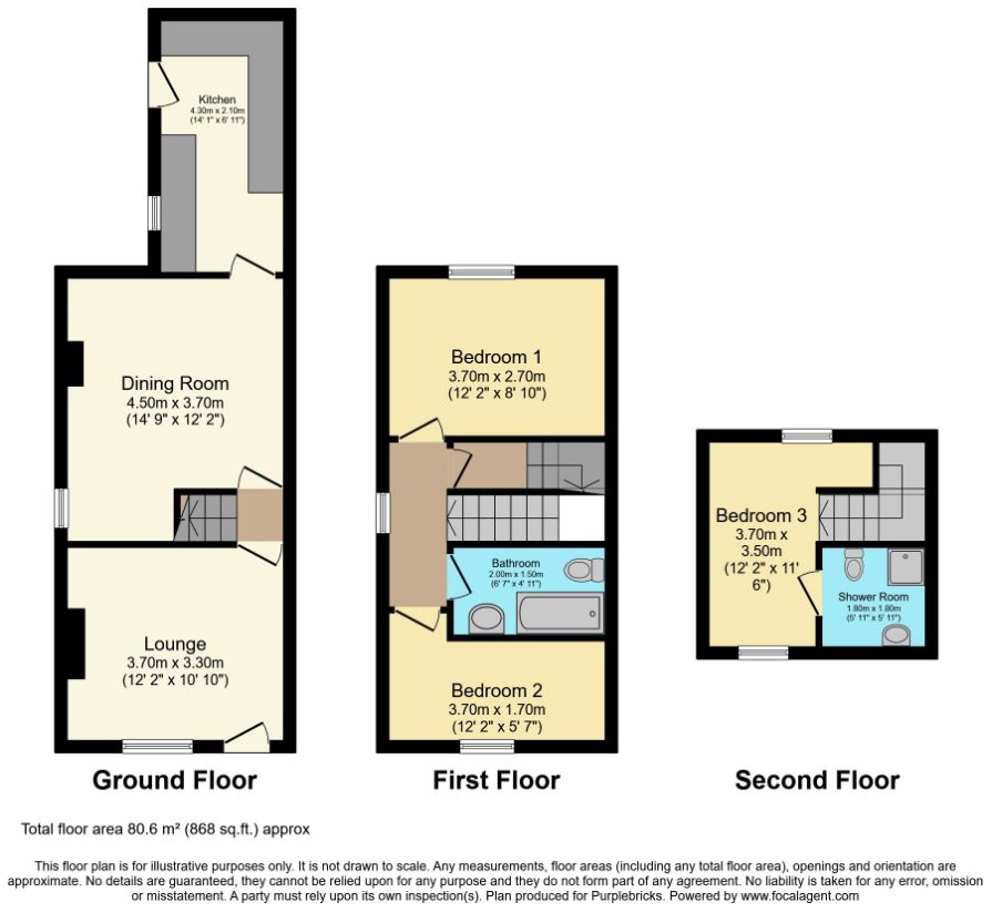 This well-proportioned three-bedroom home arranged over three floors offers versatile accommodation and is ideally located in Cannock, close to local amenities, shops and transport links. With approximately 868 sq ft of living space, the property provides a practical layout well suited to first-time buyers, small families or investors.