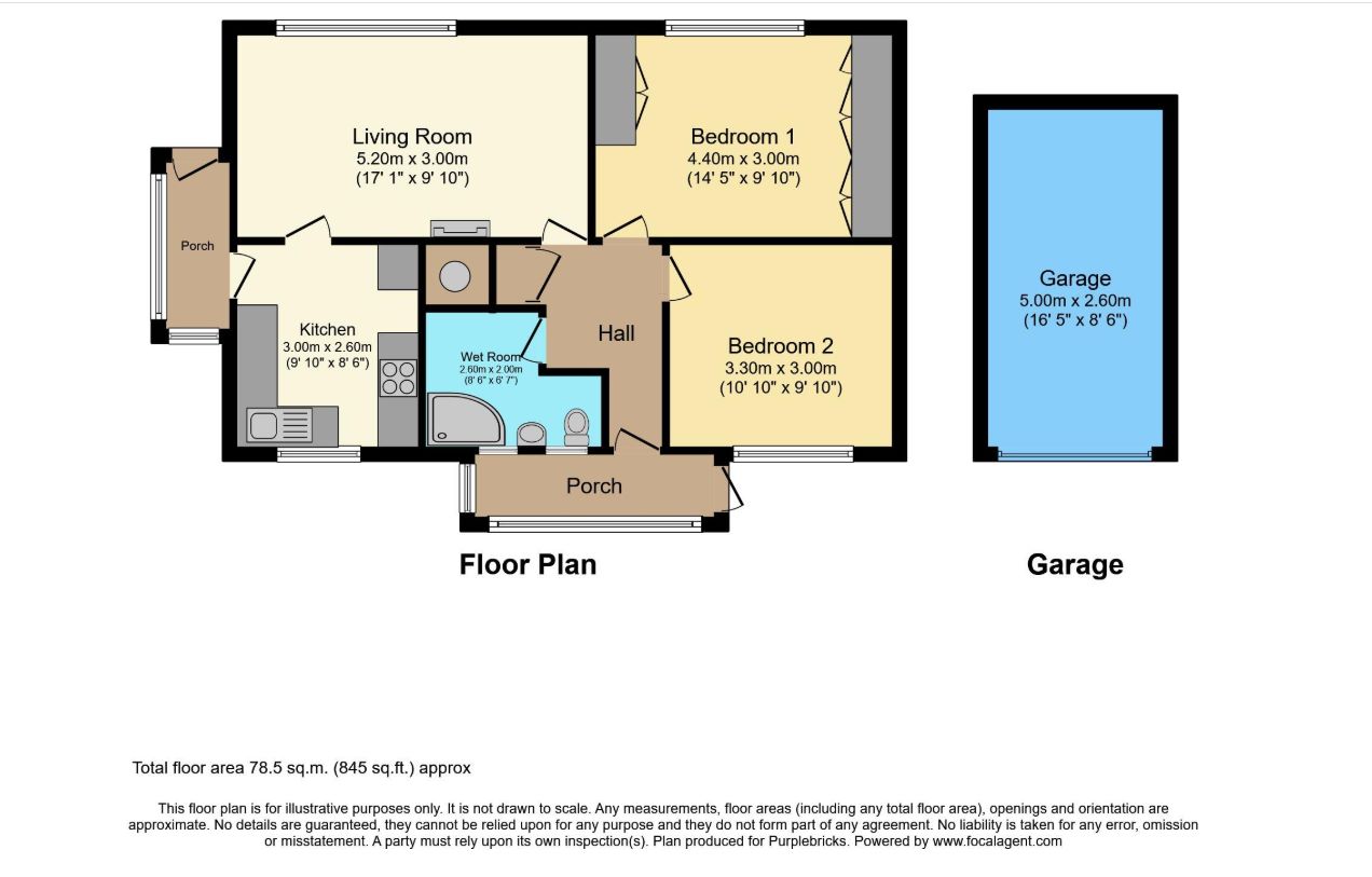 The accommodation includes an entrance hall, a comfortable lounge, a fitted kitchen, two bedrooms and a wet room. The layout is practical and easy to live with, while the home offers clear potential for personalisation or modernisation.
