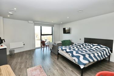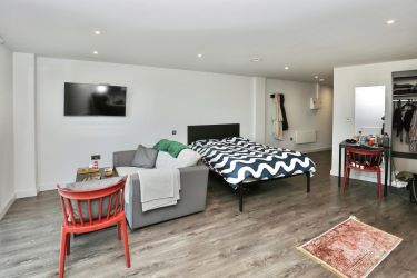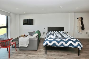 The apartment is thoughtfully designed to maximise space and functionality. Upon entering, you are welcomed by an entrance hallway that leads to a well-presented modern shower room. The bedroom area is neatly defined and flows through to the spacious open-plan kitchen, dining, and living space. This sociable and versatile layout is ideal for low-maintenance living, offering everything needed for comfort while retaining a bright and open feel. The kitchen is equipped with contemporary fittings, providing ample storage and workspace within a compact footprint.