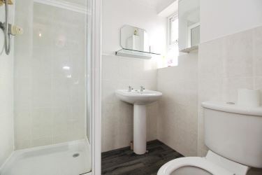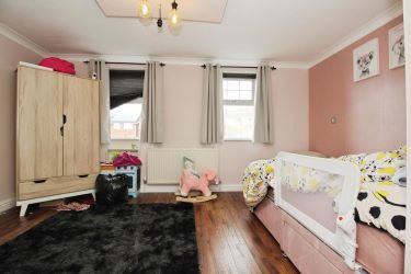 The second floor hosts two further double bedrooms. The principal bedroom benefits from carpeted flooring, neutral décor, and an en-suite bathroom complete with a shower over the bath, wash hand basin, and WC. Bedroom two is also a double, featuring carpet and neutral décor, along with its own en-suite shower room.