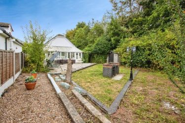 Bedroom one is a generous double, complete with fitted wardrobes, carpet, modern décor, and a luxurious four-piece en-suite bathroom. This room also enjoys direct access to the conservatory. Bedroom two is another double with fitted wardrobes, carpet, and neutral décor, while bedroom three is a single, benefiting from a solid wood floor, fitted wardrobe, and neutral décor.