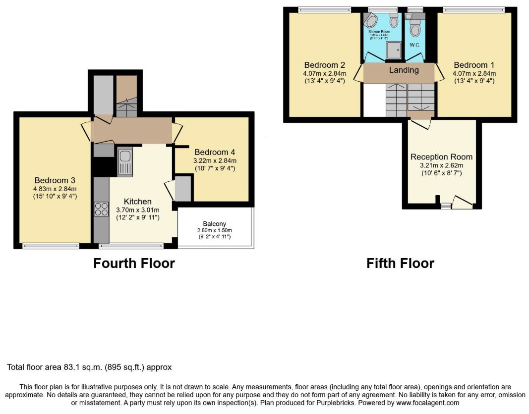 This spacious and versatile four-bedroom split-level apartment is arranged across the fourth and fifth floors and offers approximately 895 sq.ft. of well-proportioned accommodation. Ideally suited to families, professionals or investors, the property provides flexible living space in a convenient London location.