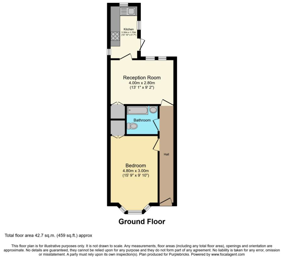 Situated in a convenient location in Croydon, this well-presented one-bedroom apartment offers compact and practical living accommodation, ideal for first-time buyers, investors or those looking to downsize. The property features a spacious bedroom to the front with bay window, providing plenty of natural light, along with a comfortable reception room offering space for both living and dining. The fitted kitchen is located to the rear of the property and provides essential storage and workspace. A bathroom and central hallway complete the internal accommodation. With approximately 459 sq.ft. of living space, the property offers a functional layout and is well positioned close to local amenities, transport links and shops, making it a convenient home in a well-connected part of Croydon.