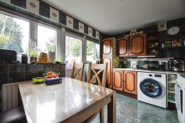 To the rear, the fitted kitchen offers worktop and storage space, with direct access to the garden and space for dining if required.