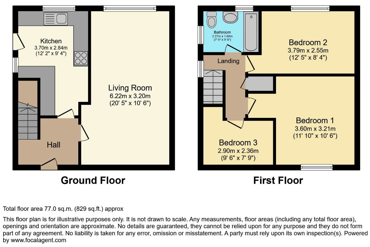 Property comprises: Hallway - Generous living room - Kitchen - Bathroom - Boarded loft, with ladder access - 3 well proportioned bedrooms