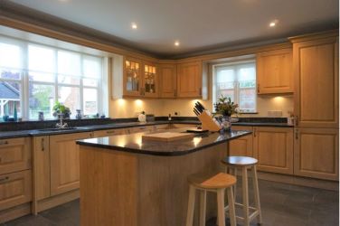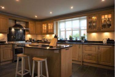 The elegant and spacious kitchen features a range of oak wall and base units with granite worksurfaces, a sink with mixer tap, a new electric range cooker with extractor and an integrated fridge/freezer. Of particular note is the large centre island which provides seating for two.