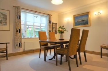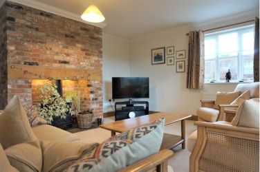 The triple aspect sitting room is located to the rear of the house and is large enough for two good size sofas and an armchair. This sitting room features an attractive brick fireplace with wood burning stove and enjoys views of the rear landscaped gardens with access via French doors.