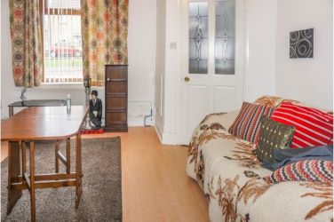 Spacious living room, fireplace which is open so a log burner can easily be fitted. Front facing window with blinds, central heating radiator and laminate flooring.