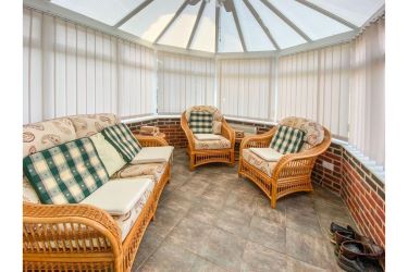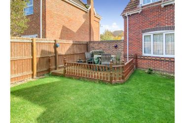 To the rear – The rear garden is enclosed with panelled fencing, it is mainly laid to lawn with various shrubs & hedges surrounding. French doors opening from conservatory to garden. With decked seating area perfect for entertaining.