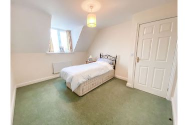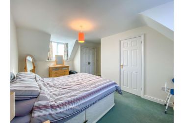 2.68m x 2.76m – The fourth bedroom having a double-glazed window, carpeted flooring, radiator, ceiling light fitting & built in wardrobe.