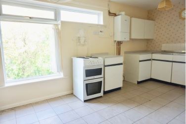Two double glazed windows to the front, radiator, fitted wall and base level units with drawer units, space for cooker, washing machine and fridge freezer, stainless steel sink and a boiler.