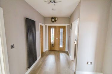 Natural wood laminate flooring, oak doors to bedrooms, kitchen, bathroom and living room.