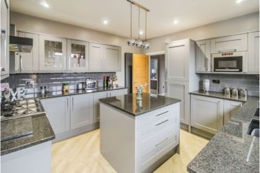 Beautifully refitted with a good range of store cupboards, granite worktops with a sink and drainer with instant boiling water tap, base units, integrated appliances including a fridge, freezer, washing machine, dryer and microwave oven, space for a range style cooker with a fitted extractor above, radiator, inset ceiling spotlights, Upvc double glazed window, natural wood laminate flooring, central island, door to the rear garden.