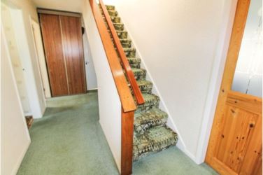 Accessed via a double glazed entrance door, stairs rise to the first floor accommodation. A double cupboard provides storage space. Radiator.