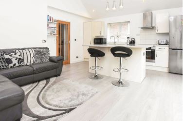 Internally features include a large bright kitchen/living room, spacious bedrooms and an en-suite. To the rear is a low maintenance garden with access to a large garage which us currently used as a home office.