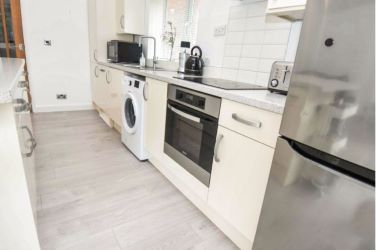 17'11 x 14'6 Double glazed windows to side and rear aspects, double glazed patio doors to rear leading to garden, spot lit ceiling, laminate wood flooring, breakfast bar, eye level & base units with work tops, Stainless steel sink with mixer tap & drainer, integrated oven & electric hob