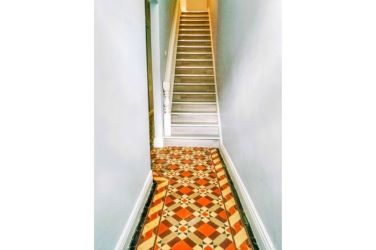 uPVC door leading in, tiled flooring, stairs to first floor.