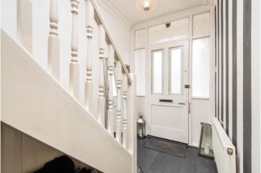 Access to ground floor rooms, radiator, stairs leading to first floor.