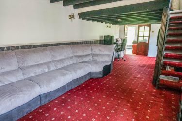 The entrance into the utility room leads to a large living room with stairs to the first floor. The living room provides access into a conservatory and kitchen.