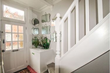 There is a small driveway to the side of the property with a dropped kerb. The front door opens into a beautiful large entrance hall with a restored Minton tiled floor.