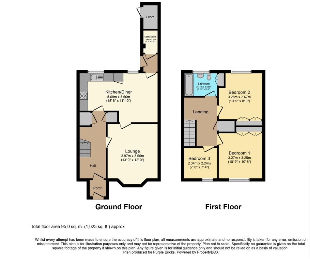The Property comprises: Entrance Porch, Hallway, Lounge, Kitchen- Dining Room, Utility, Outhouse, rear Garden, Landing with Large Storage, two Double Bedrooms, One Single Bedroom, and Family Bathroom.