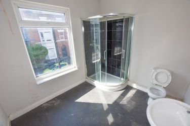 Shower cubicle, wash basin, w.c, double glazed window, radiator.