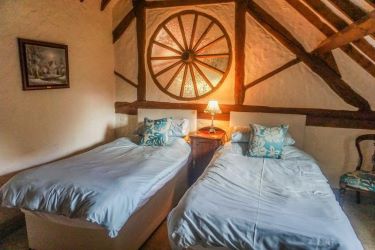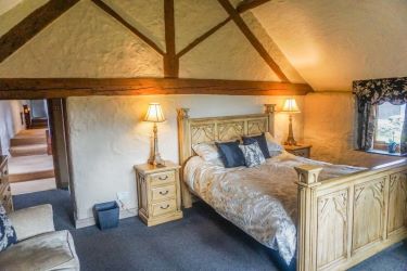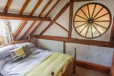 Charming and characterful this unique bedroom is ideal for use as a double or twin room. Timber wheel feature and exposed beams. Window overlooking the front elevation with pretty views. Radiator and power sockets. Access to en-suite shower room.