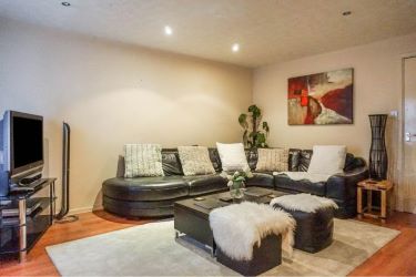 The lounge has a double glazed window to the front, laminate flooring, and a central heating radiator.
