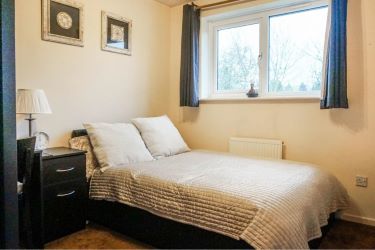 Bedroom two is a double bedroom with a double glazed window to the front, a central heating radiator, and is laid with carpet flooring.