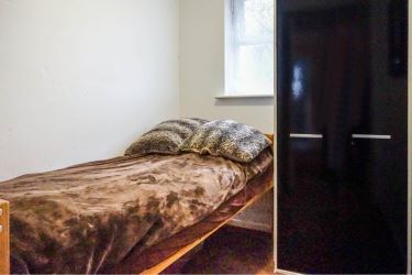 Bedroom three is a single bedroom with a glazed window to the rear, a central heating radiator, and is laid with carpet flooring.