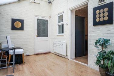 To the rear is a low-maintenance garden, mainly laid to lawn with a brick-built outbuilding and timber fence panels and mature shrubs keeping it private and secure.