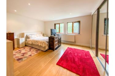 Bedroom One (5.61m x 3.97m) Floor to ceiling walk in wardrobes, with mirrored sliding doors. En-suite.