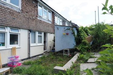 The kitchen has some utilities built in, a door that leads to the back garden, which is divided with the upstairs flat. There are external storage cupboards in the garden.