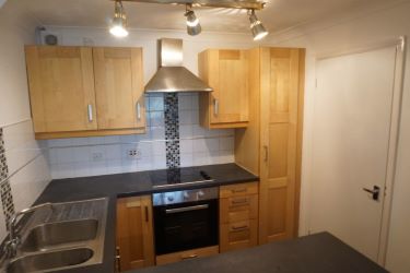 A large, bright kitchen with eye and base level store cupboard and roll edge work surfaces. New oven in recess, hob over with filter, power and light, plumbing for washing machine/dish washer and archway opening to the dining space.