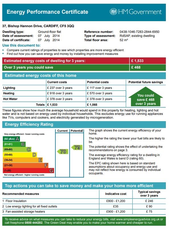 An EPC is broadly like the labels provided with domestic appliances such as refrigerators and washing machines. Its purpose is to record how energy efficient a property is as a building. The certificate will provide a rating of the energy efficiency and carbon emissions of a building from A to G, where A is very efficient, and G is inefficient. The data required to allow the calculation of an EPC includes the age and construction of the building, its insulation and heating method. EPCs are produced using standard methods with standard assumptions about energy usage so that the energy efficiency of one building can easily be compared with another building of the same type. The Energy Performance of Buildings Directive (EPBD) requires that all buildings have an EPC when they are marketed for sale or for let, or when houses are newly built. EPCs are valid for 10 years, or until a newer EPC is prepared. During this period the EPC may be made available to buyers or new tenants.