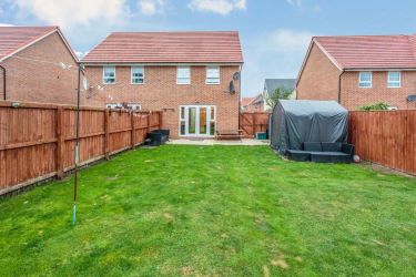 The rear garden is fully enclosed by fencing with a patio area and laid to lawn.