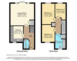 Composite door opening into the entrance hallway. Doors leading into downstairs WC, with pedestal wash basin. Radiator. kitchen and lounge. Stairs leading to first floor. Radiator.