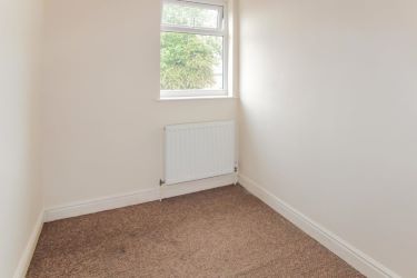 The focal point of the room is a modern fireplace surround incorporating an electric fire. A large double glazed window overlooks the front elevation. Radiator.
