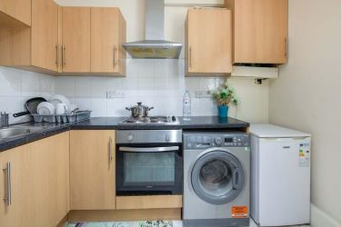 Accommodation comprises entrance hall with inbuilt storage cupboard, leading into the bright reception room with ample space for relaxing and dining. The separate kitchen comprises a modern range of matching wall and base units with work surfaces and breakfast bar area, incorporating inset sink unit, electric hob with overhead extractor and electric oven, and further space for appliances. There is a spacious double bedroom with space for free-standing furniture, and a stylish bathroom with modern suite and elegant tiling.