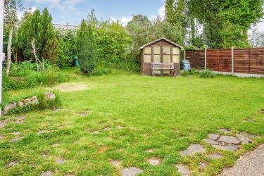 The front offers a degree of privacy with the high hedge. Laid to lawn with drive to the side leading to the garage. The rear and side are lawned.