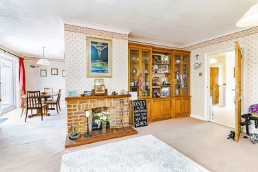 This detached bungalow is bright and airy, with all the rooms being of a good size and with the added bonus of the potential to create more space by converting the large loft. The wide entrance hall leads you to the main bedroom overlooking the front with built-in wardrobes. There is a further good sized double bedroom and a third single bedroom/office. The bathroom is fitted with a white suite and a walk-in cubicle with refitted Aqualisa shower. The kitchen has been recently refitted and boasts adjustable lighting, white worktops, pan drawers and a double glazed window that overlooks the side access. There is also a single door leading out to the detached garage. The large L-shaped lounge/diner has a feature fireplace and brick surround, plenty of space for a large dining table, two sets of sliding doors leading you through to a conservatory and out to the patio area.