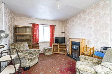 Front and rear facing windows, electric fire with wooden Adams surround, ceiling light, TV aerial point, telephone point, radiator, storage cupboard with shelving, cupboard containing electric meter and fuseboard.