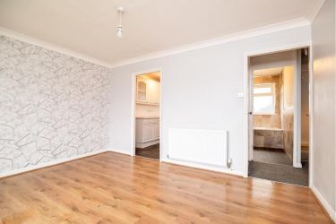 Entrance via a private, good sized hallway, with large built in cupboard and stairs to first floor. Living Room with large picture window and laminate floor. Kitchen with built in oven and hob and under bench space for washing machine and fridge freezer. Two good sized bedrooms. Three-piece white suite in the Bathroom with vinyl clad walls and tiled floor. Benefitting from gas central heating.
