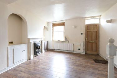 Lounge / Kitchen/Dining room has front aspect sash window with single panel radiator below. The floor is fitted with continuous laminate flooring, second single panel radiator, double panel radiator in dining area, cast iron effect fire with back boiler,wooden mantle and surround. Storage and meter cupboards, stairs to the first floor.