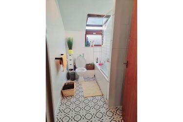 Comprising of a bath with electric shower overhead and glass shower screen, pedestal hand wash basin, WC and a double glazed frosted window.