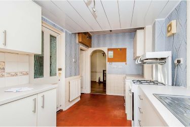 4.36m x 2.44m -Having tiled flooring and partially tiled walls, fitted wall and base units, space for oven, space for under counter fridge/freezer, sink and drainer with mixer tap, ceiling light fitting & radiator.