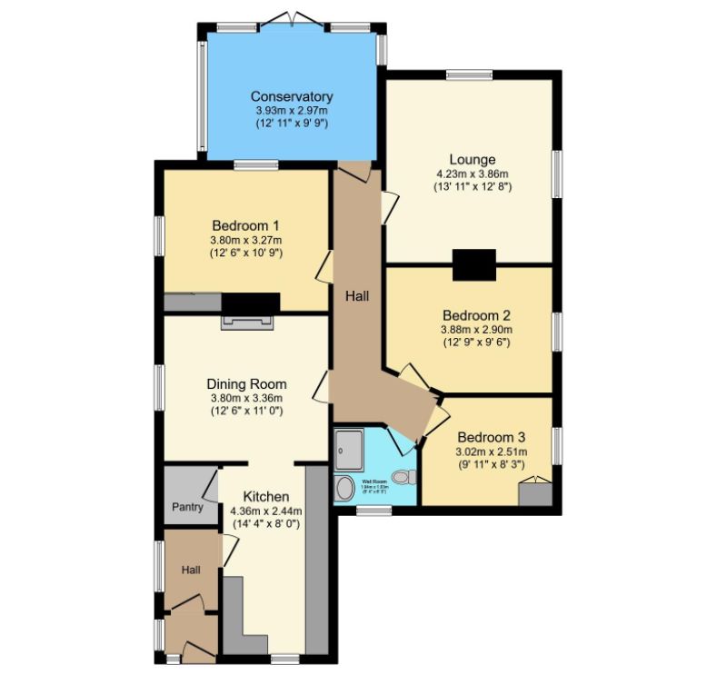 3.93m x 2.97m - Providing a great extra space, having carpeted flooring, electric points, wall light fitting, UPVC glazed windows surrounding. With French doors to garden