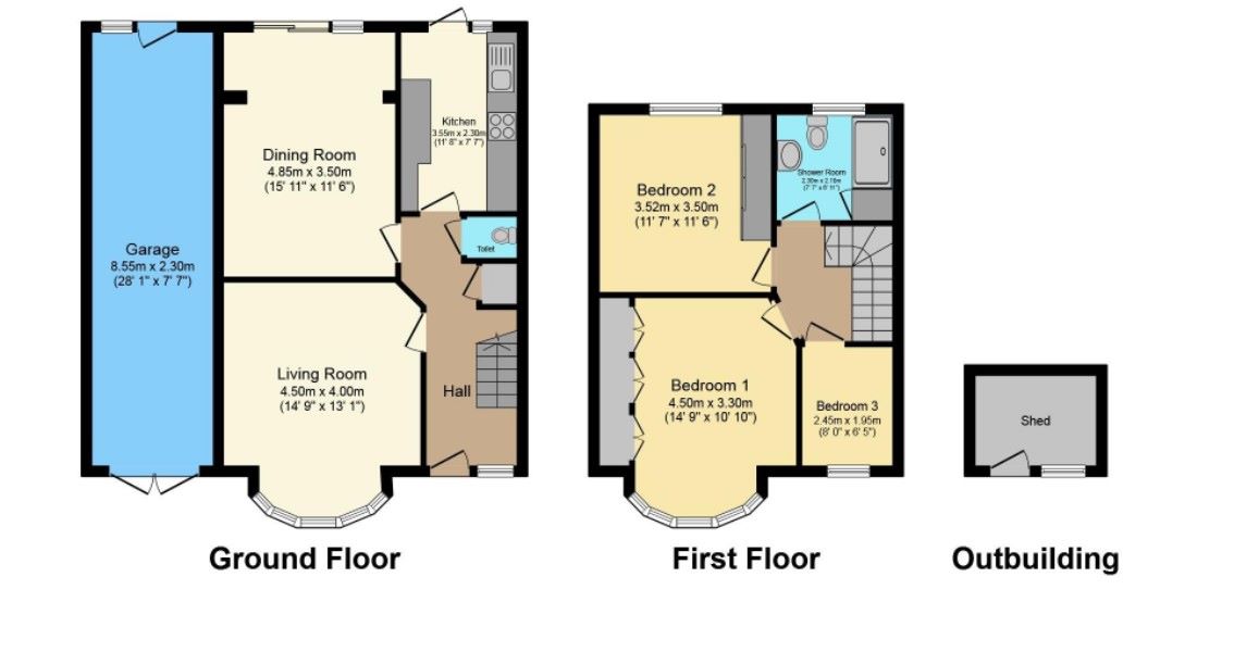 The ground floor comprises: Two reception rooms a separate kitchen and Ground Floor Cloakroom/wc. The first floor offers Three bedrooms and a Bathroom/wc. Outside, an attached garage with parking space in front and a large private rear garden.
