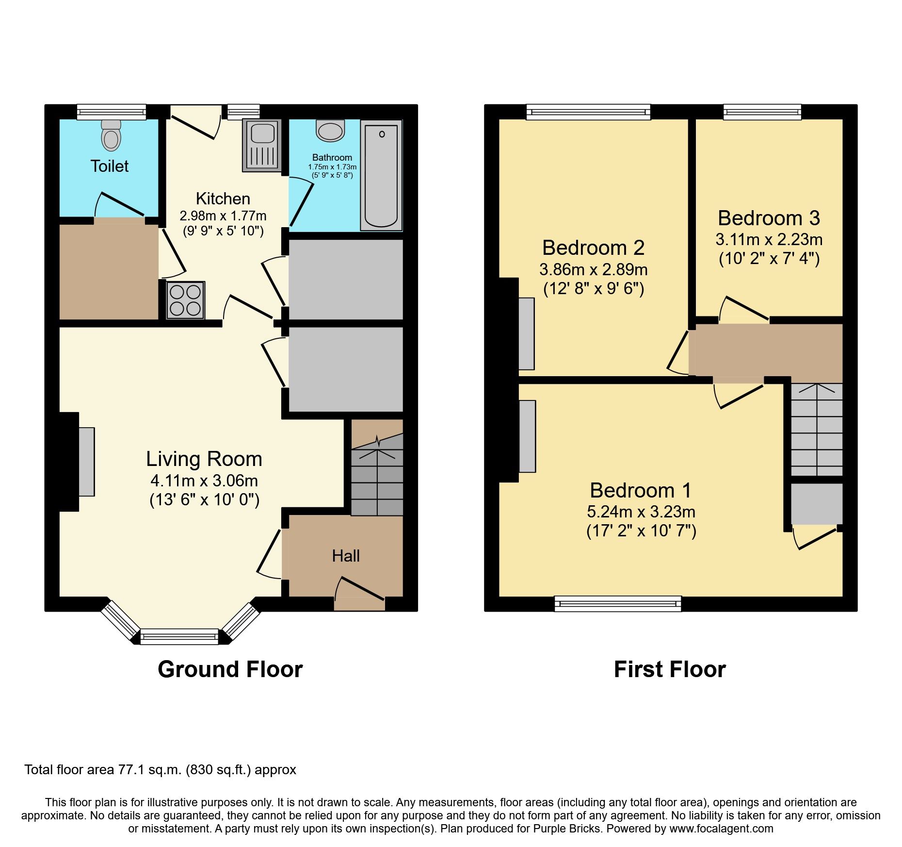 The property offers accommodation including an entrance hall, living room, kitchen, bathroom and separate w/c and three bedrooms.